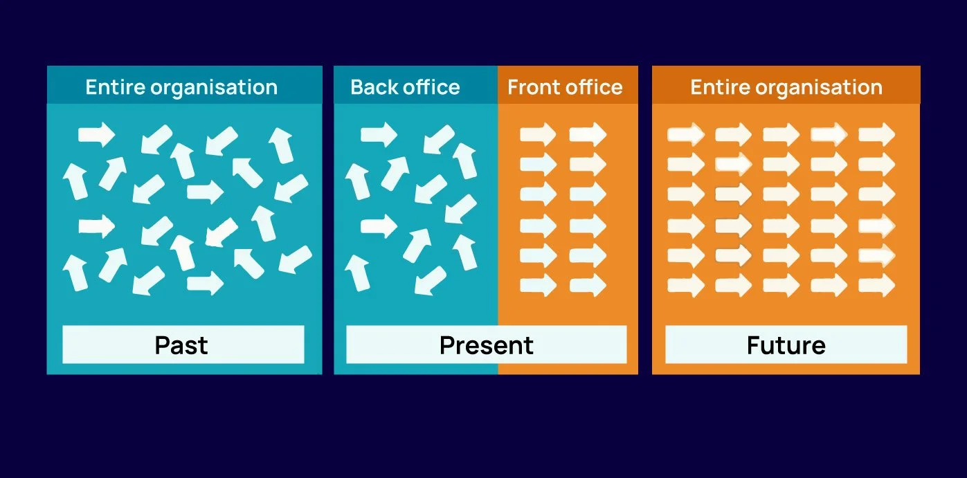Misalignment between front and back offices causes both external and internal harm. External customers will receive disappointing experiences, their expectations will be failed and, in the age of social media, they will tell others about their disappointment too. Your organisation will fail to differentiate itself from its competitors and the return on your brand investment will be diminished. Internally, the morale of your front line staff will be damaged as their efforts to deliver an excellent customer experience are undermined by struggles with their colleagues, your processes, systems and tools. At best, their effectiveness will be reduced; at worst, they will leave. It’s a lose-lose all round.